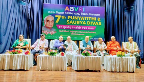 ଭୁବନେଶ୍ୱର: ପ୍ରାକ୍ତନ ପ୍ରଧାନମନ୍ତ୍ରୀ, ବିଶିଷ୍ଟ କବି, ଜନନାୟକ, ଭାରତରତ୍ନ ତଥା ବହୁମୁଖୀ ବ୍ୟକ୍ତିତ୍ୱର ଅଧିକାରୀ ସ୍ବର୍ଗତ ଅଟଳବିହାରୀ ବାଜପେୟୀଙ୍କ ସପ୍ତମ ପୁଣ୍ୟତିଥି ସହିତ ସୌର୍ୟ୍ୟ ଦିବସ ସ୍ଥାନୀୟ ଜୟଦେବ ଭବନ ଠାରେ ଅଟଳବିହାରୀ ରିସର୍ଚ୍ଚ ଇନ୍ଷ୍ଟିଟ୍ୟୁଟ ଠାରେ ଯନ୍ତ୍ରୀ ସୁଧାକର ପତ୍ରିଙ୍କ
